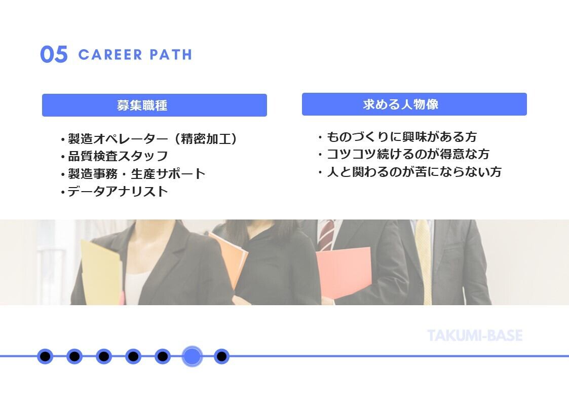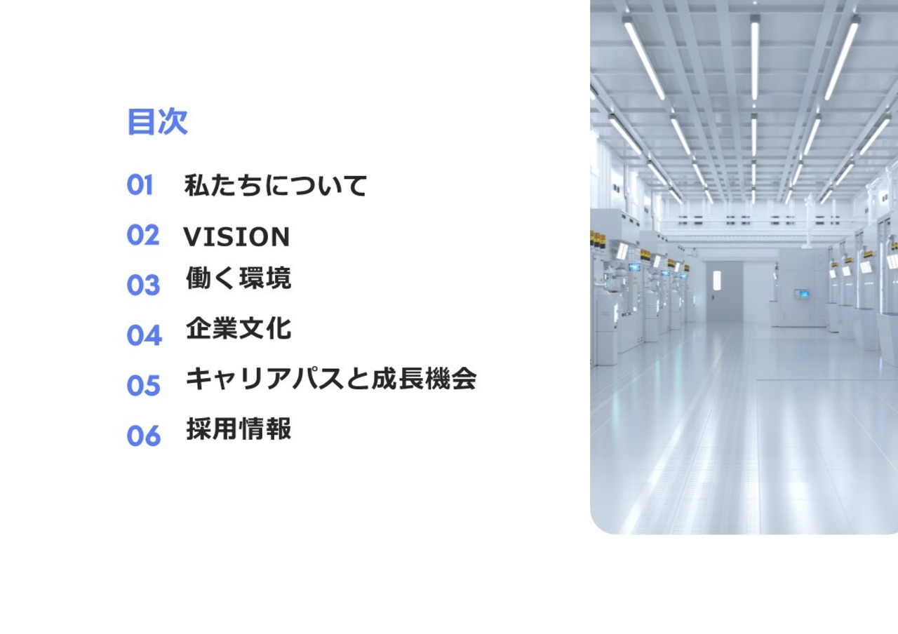 会社概要・ストーリー・代表メッセージ・目指す未来・社会への貢献・社風・バリュー・働く人紹介・ キャリアパス・スキル習得の仕組み・仕事内容と求める人材像・勤務時間・給与・応募方法など。