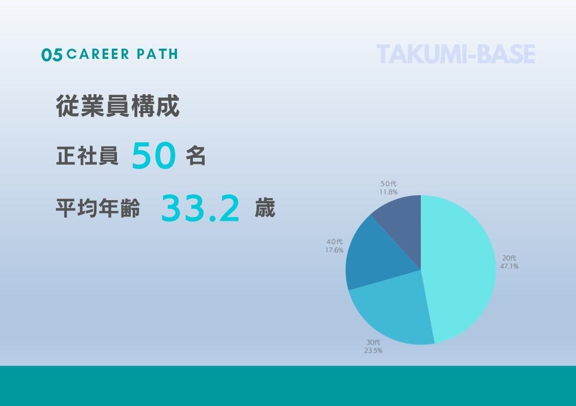 会社概要・ストーリー・代表メッセージ・目指す未来・社会への貢献・社風・バリュー・働く人紹介・ キャリアパス・スキル習得の仕組み・仕事内容と求める人材像・勤務時間・給与・応募方法など。